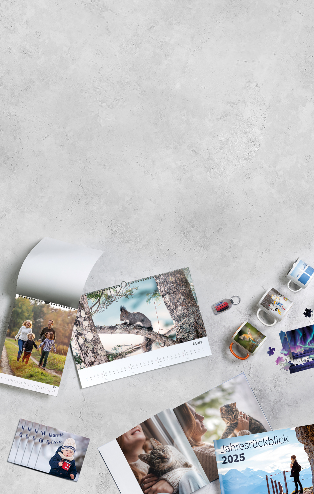 Unser Fotoservice bietet Dir unzählige Möglichkeiten, um Deine Erinnerungen aufzubewahren oder zu verschenken. Finde kreative Ideen, von Fotobuch, Poster oder Fotokalender bis hin zu Geschenkartikeln.